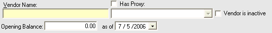 Or, if this is a new Vendor, leave Has Proxy unchecked, enter an opening balance (which will probably be zero if you're not migrating from another system), and the date of the opening balance (most likely today).
