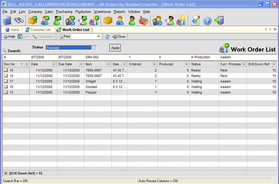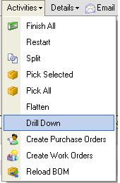 When I add this item to a work order, you will see only three components. From the top assembly work order we can generate all the sub-assemblies by clicking Activities --> Drill Down.