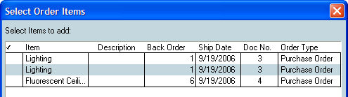 A special dialog will open that will allow you select Items from the Vendor's currently outstanding POs by simply checking off the appropriate Item (s) and clicking OK: