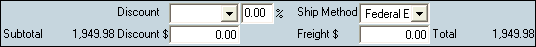 Below the order grid, you have a few additional fields for choosing discounts and freight: