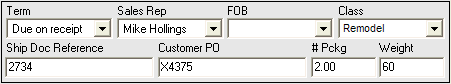 In addition to the standard Sales Order information, the Ship Doc contains a few additional fields such as the Ship Doc Reference (a customer reference number), the number of packages in the shipment, and the total weight of the shipment.