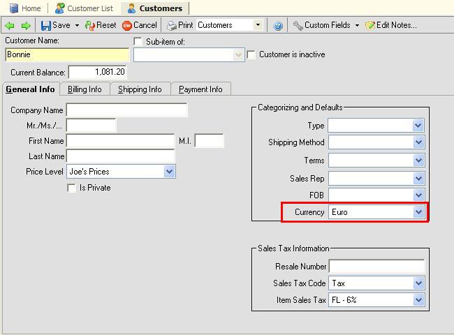 Now that you have set up the currencies, you must tell All Orders that a particular customer or vendor is foreign. You do this by opening up the customer or vendor editor and picking a currency from the 'Currency' drop down list.