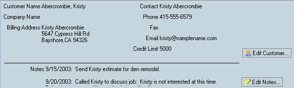 Of course, if you see any information about the Customer that needs to change, click the Edit Customer... button to pull up the New Customer dialog with the Customer's info already filled in. Just make any needed adjustments, and then save it off.