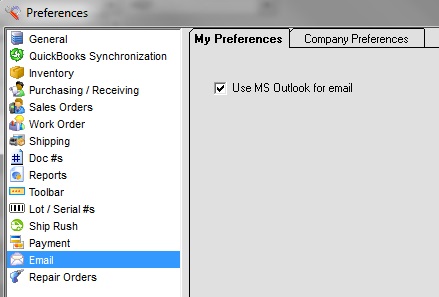 On the “My Preferences” tab, check the box if you will use MS Outlook for your email service.