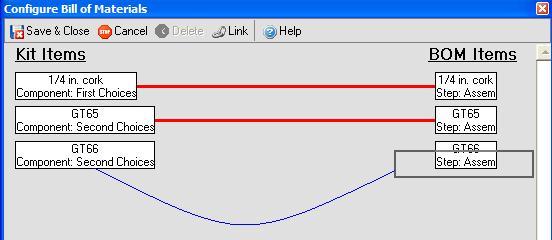 Simply drag the boxes from the Kit Items to the corresponding item of the BOM Items. All Orders will do link the items automatically by using the 'Link' button. To delete the link, just select its name, right-click, and then choose Delete. You can also click the Delete icon to remove that component.