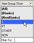 It allows to filter out blank fields (or filter to view only blank fields). Additionally, a comprehensive list of current field values is displayed. In the example above, if I were to select PT, then only those Items with the Item Group "PT" (Part) would show up in the list.