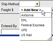 The values listed here are taken directly from the Shipping Methods profile list. If you were filling out this form and noticed that your desired shipping carrier isn't listed among the choices, a quick double-click of the <Add New> line item will immediately open the appropriate profile list so that you can remedy the situation.