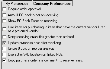 These preferences check boxes pertain to making and receiving Purchase Orders.