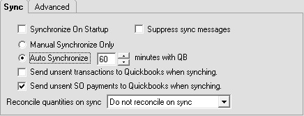 To help ensure that QuickBooks has your most recent transactions, choose Send unsent transactions to QuickBooks when synching and Send unsent SO payments to QuickBooks when synching.