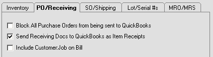 Send Receiving Docs to QuickBooks as Item Receipts. Typically, all Receiving Docs introduced into QuickBooks as bills. However, you should desire, you can check this box to send them as item receipts.